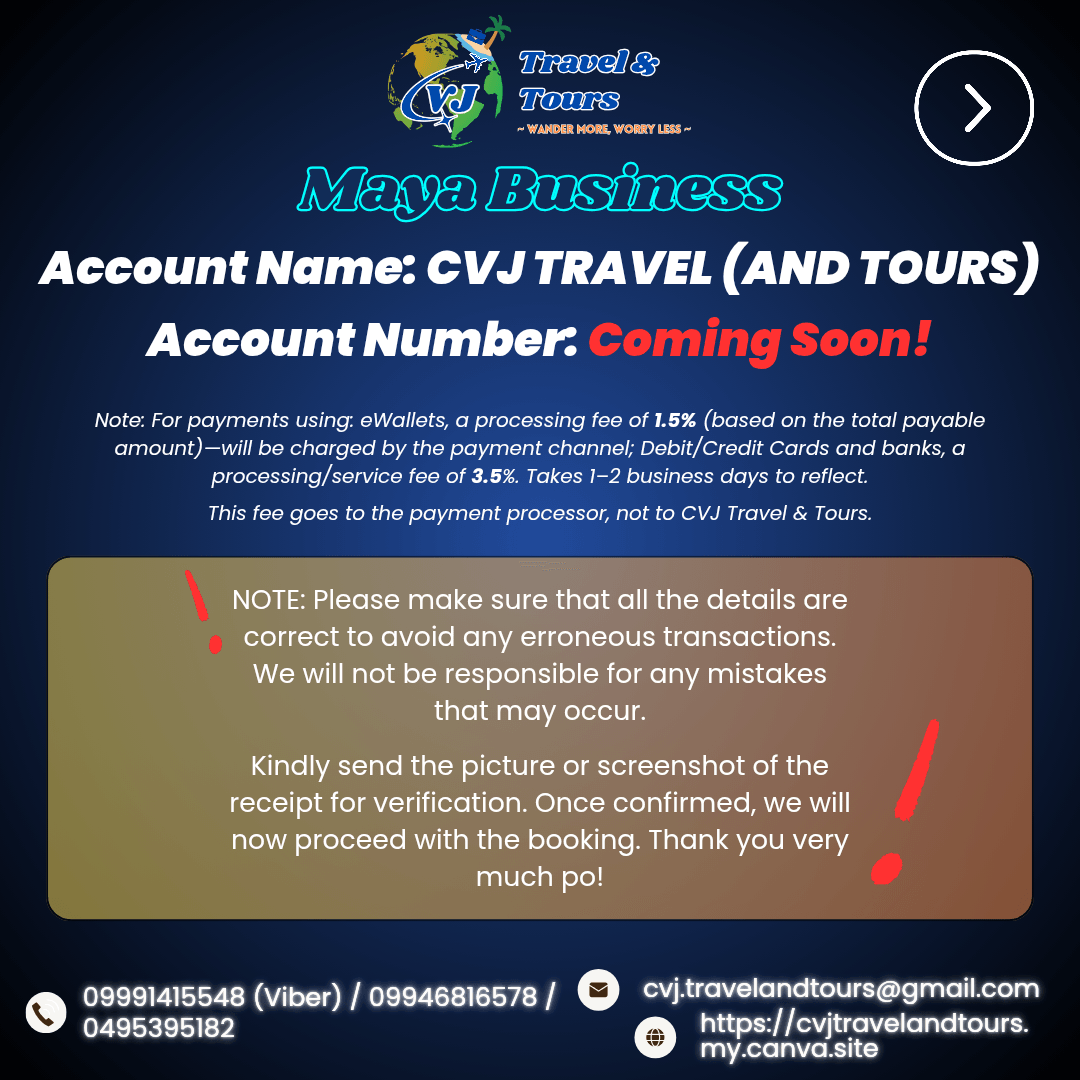 This fee goes to the payment processor, not to CVJ Travel & Tours.