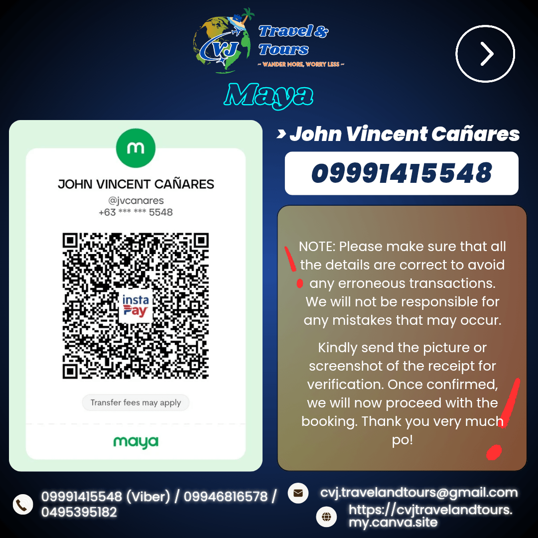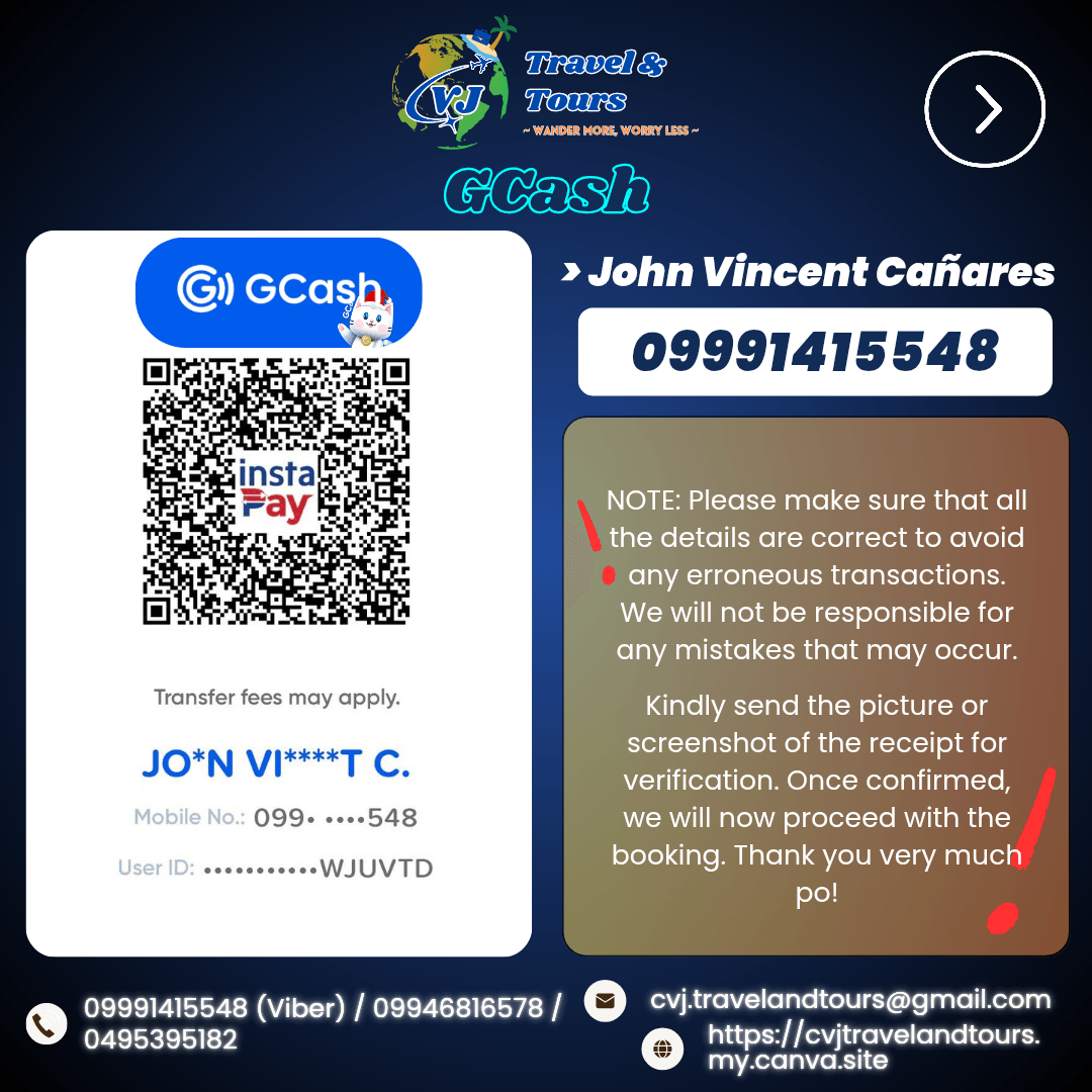 Account Name: John Vincent Cañares - CVJ Travel (QR Code)